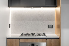 - Contemporary kitchen with European appliances, gas cooking, dishwasher and pantry
